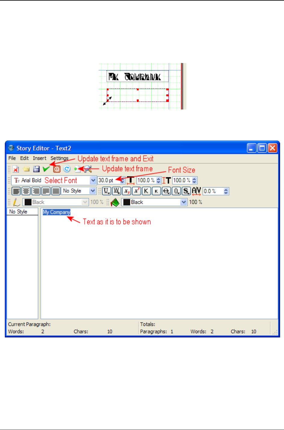 Text. This will open the Story Editor window. The items that are needed have been labeled in the graphic