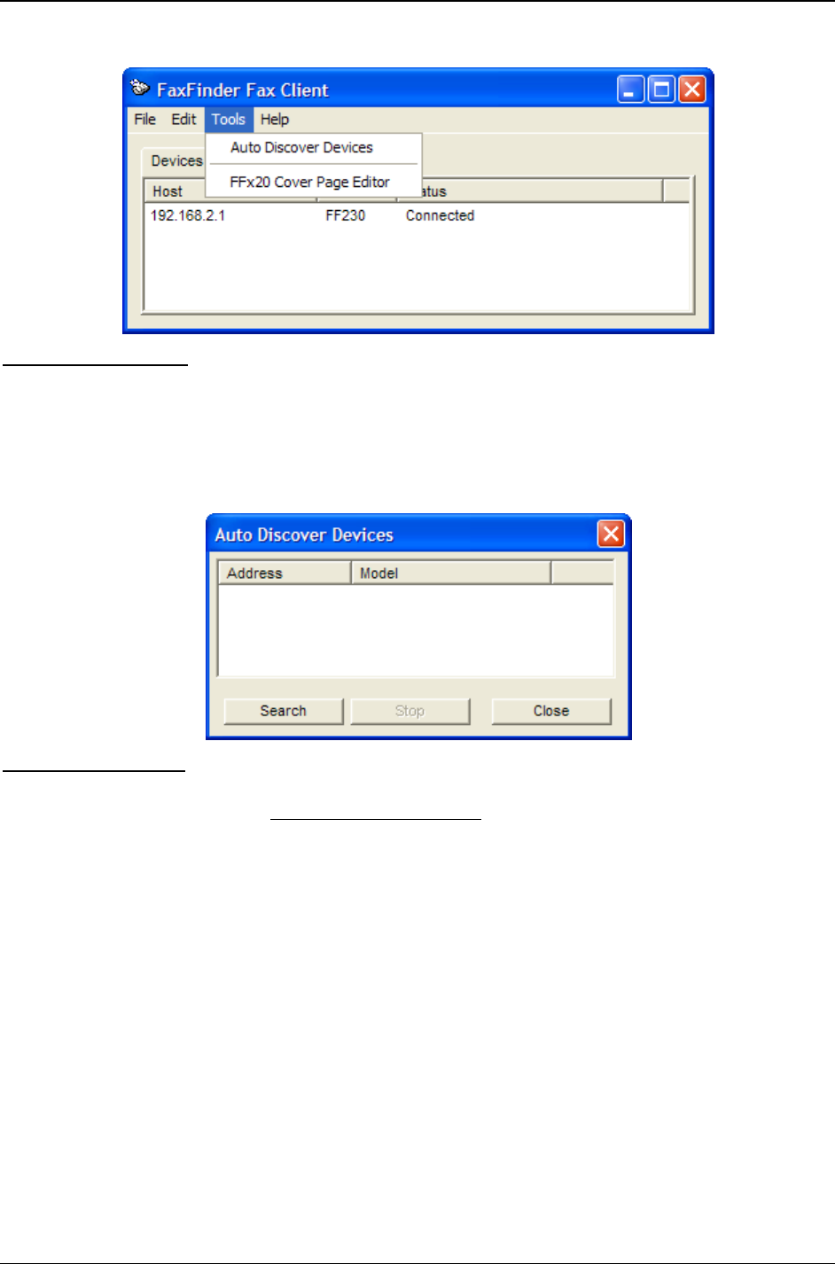 Selecting Auto Discover Devices will have the Client software search the network